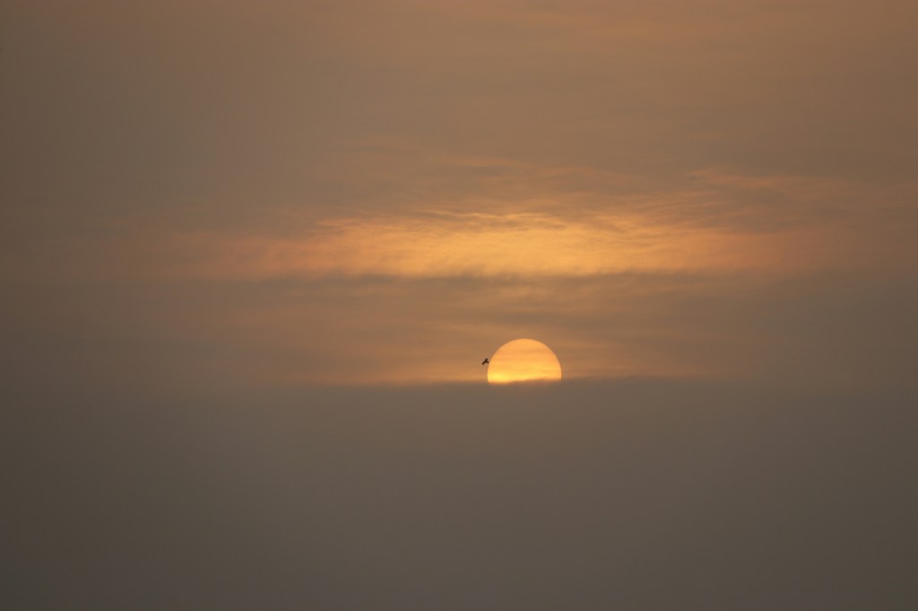 My gaze shifts towards the sky. In the wintertime, smog perpetually chokes the city. In the early morning, I can barely make out the outline of the tress on the other side of the small lake. Out of the corner of my eye, I glance at the sun. I can look at it for far longer than I should be able to. It is a deep orange ball, hanging suspended in the thick haze, flickering slightly, like a candle about to be extinguished. I sigh slightly. “The light will never pierce through.”